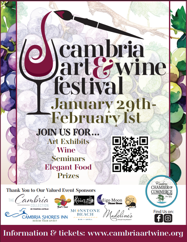 Don’t miss out on this unforgettable celebration of artistry and flavor! The Cambria Art and Wine Festival is a 4-day event of creativity, culture and the finer things in life …. Including the best of the wineries on the Central Coast!